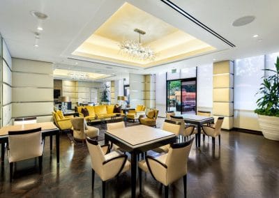 “The TenFiveSixty includes a beautiful, expansive lobby and beautiful public areas. Enter and exit off Wilshire for safety. Note that almost all of the units are two bedrooms.”